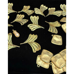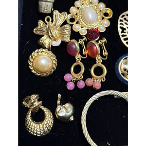 * A wide variety of vintage gold-tone earrings, enamel accents, and rhinestone settings