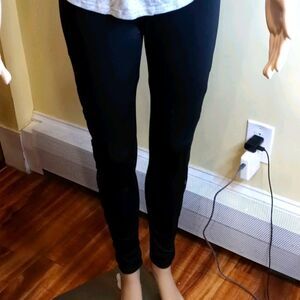2 black leggings lace mesh and red/ gold sparkle stripe , new, both sizes are s/m