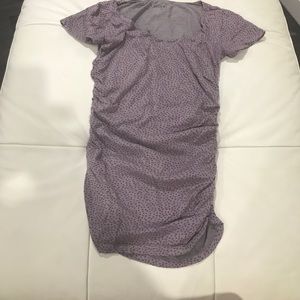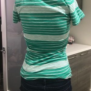 Gathered at sides. One green and white striped, other is grey with purple dot shapes. Both are like new & selling as set unless you only want one. Thanks for looking!