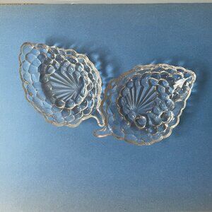 Set of two cute glass carved candy bowls shape of leave or grapes