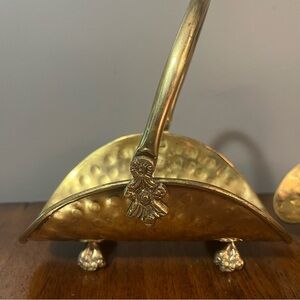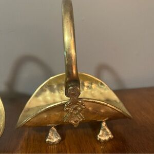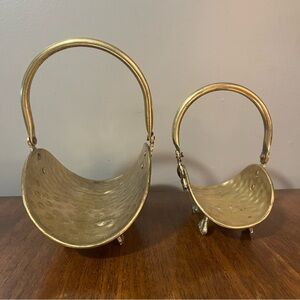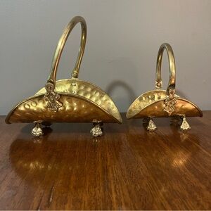 2 mid-century miniature brass baskets with hammered texture and claw feet.