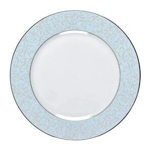 2 new Mikasa Parchment Blue Fine China 10.75" Dinner Plates w/ Platinum Scrolls