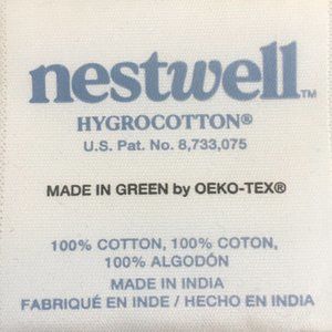 2 brand new Nestwell™ Hygro 100% Cotton Hand Towels. Woven of 100% Cotton (designed with hygro twist loops on one side for a softer feel with the reverse in terry cotton for extra absorbency), these hand towels are soft and highly absorbent. Condition is brand new with original retail tags.