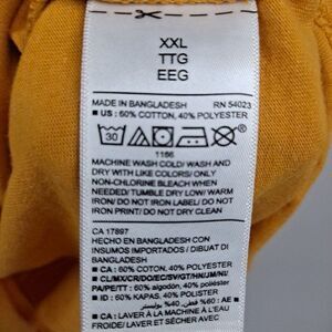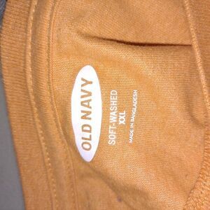 Both are crewneck , long sleeved, pullover. Soft Washed. Size XXL. One is solid mustard color, the other is gray with a stripe across the chest. Cotton blend. Measures 50" chest, length is 32 ". Retail $36.