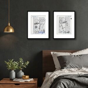 2 original Funky Face sketches on vintage dictionary pages - Funky Face Goddess