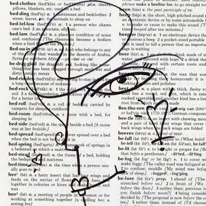 These funky ink illustrations in permanent marker are drawn on vintage dictionary pages.
