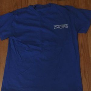 Gray shirt with Burger-Fi logo, and an additional T-shirt with University of Kentucky choirsters logo on it.