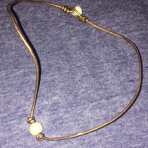 2 brown and gold chokers: 1 pearl leather brown and 1 gold charm choker!