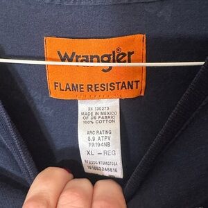 1 Ariat and 1 Wrangler long sleeve FR flame resistant fire retardant work shirts. Both have minor stains which is reflected in the price. These shirts still have a ton of life left in them.