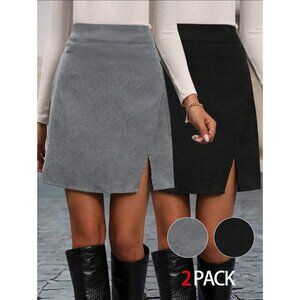 2 pack mini skirts small slit high waisted corduroy brown & black