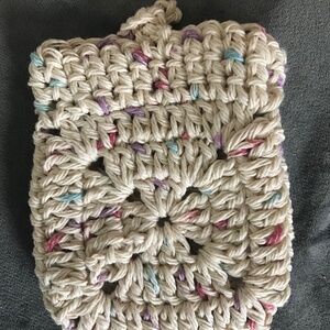 Hand crocheted with 100% cotton crochet thread. Throw in washer and dryer when needed, becomes softer and fluffier. Fits most hand crafted soaps. Attached draw string. Granny square pattern.