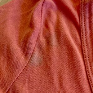 One shirt has some discoloration on top left shoulder