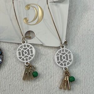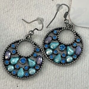 2 pair earrings blue rhinestones dangle drop dreamcatcher