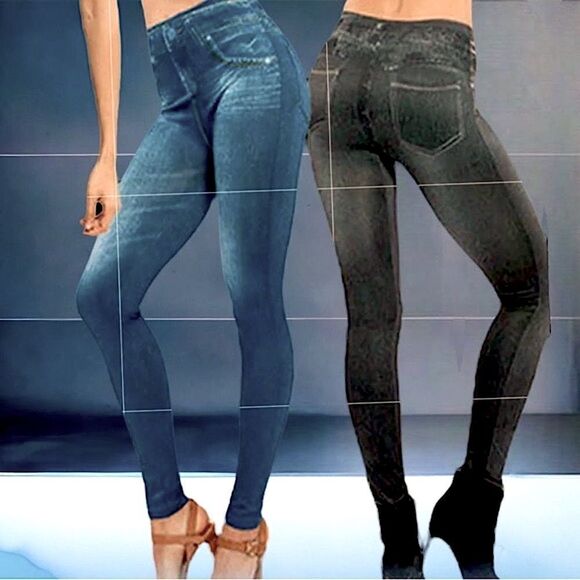 2 pair l Painted on l Jeggings l Blue & Black l New