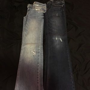 They are Aeropostale jeans they were made with hole the holes were not made by me they are in good condition have been worn a good bit Light jeans are 00 Darker jeans are 0