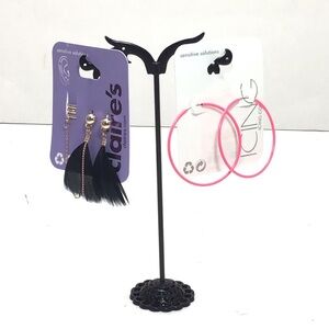 (2 pairs) Claire’s & Icing Hoop Feather Dangle Cuff Pierced Earrings.