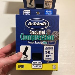 Two pairs available, contact if you would like both and I can make a deal new black compression socks for men. Size medium 7.5-10 See box for details. Never worn. Comment below with any questions Comes from a smoke free household and pet friendly household.