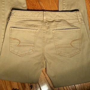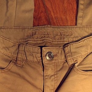 2 pairs of Super skinny American eagle khaki pants ! Super cute with bottom of pants rolled up ! Really comfortable ! FEEL FREE TO ASK QUESTIONS AS ALWAYS :)!!!