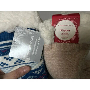 Charter Club Women's Slipper Socks With Grippers L/XL . Keep your feet cozy this winter with Charter Club's Women's Slipper Socks with Grippers. These socks are perfect for lounging around the house or snuggling up by the fireplace.