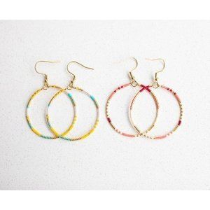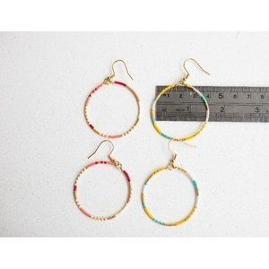 2 pairs Seed Bead Boho Hoop Earrings Colorful beaded Hoops Lightweight