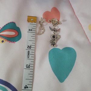 New, handmade. A space themed earring set featuring astronauts, angel wings, planets, hearts, stars, and punk studs. Silver tone. Silicone stoppers.