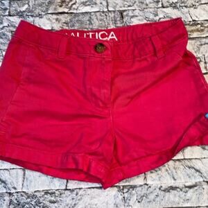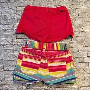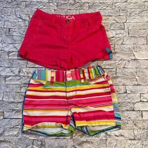 2 pairs toddler girl Sz 5 Shorts. 1st pair is Nautical. They are hot pink with front pockets. 2nd pair is by Children’s Place. They have front and back pockets. Both pairs have adjustable waist. Good used condition. Smoke free home.