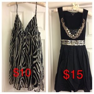 Can be purchased individually, just comment below and I can separate. The black dress has ties around the waste. Zebra dress is from H&M the throne was bought in Soho NYC. One worn once each.