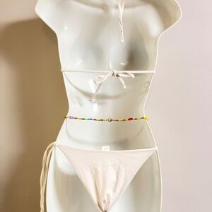 Cute Top And Bottom,String halter bikini top,Sexy triangle bikini swimsuits for women ,Side tie bikini bottom, ,Soild color,Tie closure on the back, - Size: Small