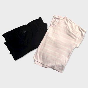 Bundle comes with 1 Navy Blue V-Neck Shirt and 1 Knit Pink White Striped Top, both tagged XXL.