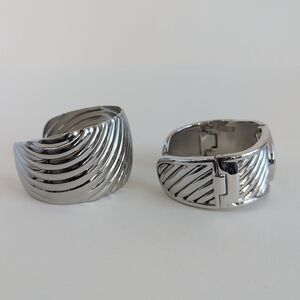 This set is the perfect way to add an element of edge and sophistication to any outfit. The simple, yet bold design and high-quality materials make it a timeless set that will complement any style. This sleek combo features a silver-tone hinged cuff watch and a matching lightweight bangle cuff bracelet that can be adjusted for fit. Both pieces have a ribbed texture for a little extra dimension.