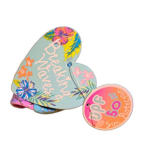 Bright and fun swim set for kids. Features a vibrant mix of pink, blue, and green colors. Perfect for a day at the pool or beach.UPF 50