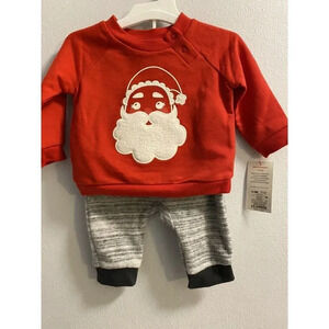 2 pc Toddler Boy 0-3 months Cat & Jack Santa Top & Bottom Set Red & Gray NWT