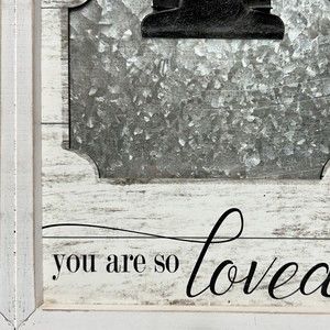 2 picture frames 5x7 & 4x6 Silver & white distressed clip on you are loved. Some writing and sticker residue on backs of frames. See photos for Condition.