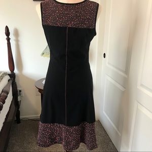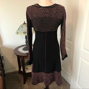 2 piece DECA dress with cover top. Size Taille 2 (US size 8). Sadly it’s never been worn as it has some Acrylic which I’m allergic too. Colors are black with rustic-orange and white. Lovely dress ensemble. Excellent condition.
