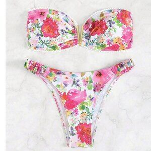2 piece Floral Print Bandeau Bikini Swimsuit multicoor