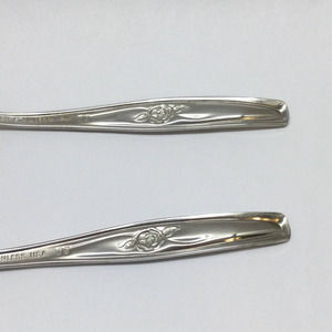 2 piece International Silver Random Rose Stainless Luxury Teaspoons 5 7/8" Length