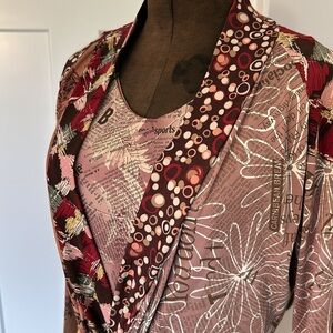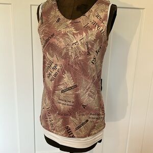 2 piece Tank top and belted over jacket “nothing matches” newspaper print fabric
