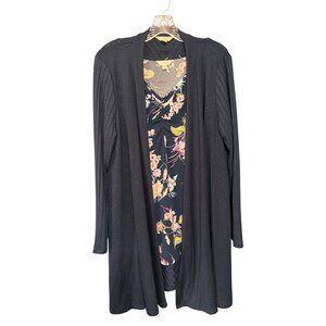 This Terra & Sky set weaves comfort with elegance. The flowing blue cardigan complements the floral navy and pink sleeveless top, adding versatility to your wardrobe.