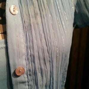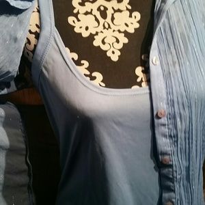 Baby blue collar dress with matching tank top.has silver pinstriping