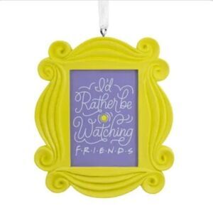 Fans of the popular TV show "Friends" will recognize the iconic frame that hung over the peep hole on the door in Monica and Rachel's apartment. Relive iconic moments with the pair of roommates and their pals Ross, Chandler, Phoebe and Joey every time you see this Christmas tree ornament that declares your affinity for the sitcom. Hallmark Ornaments celebrate characters and personalities from contemporary and classic movies, TV shows, toys, entertainment and sports. Each festive and collectible ornament is perfect for sharing with family and friends. FRIENDS and all related characters and elements © & ™ Warner Bros. Entertainment Inc. (s22)