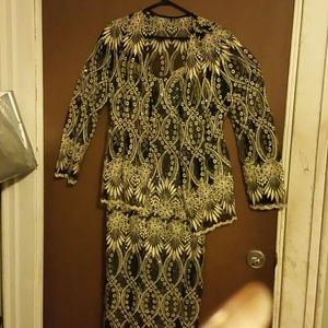 Gold\blacl/silver glitter eyelid bridal lace gown