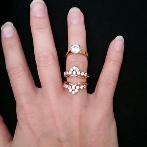 This ring is a size 5, and it comes in two pieces. You can wear them together or wear the single diamond by itself. It's great to wear as an extra accessory for any outfit or just to add a little extra bling. These are NOT real. I bought it originally for $20.