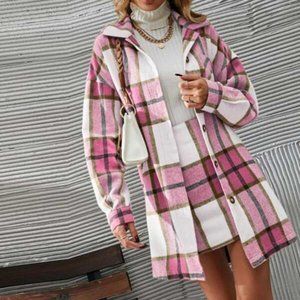 2 piece set Plaid Print Button Front Overcoat & Skirt