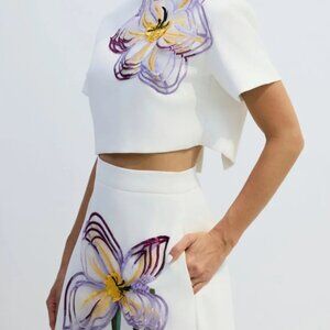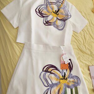 2 piece set top & skirt flower embroidery