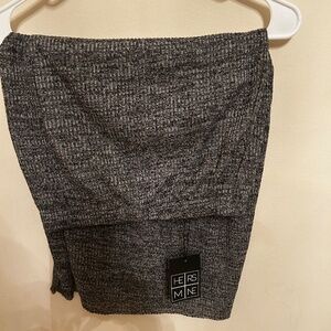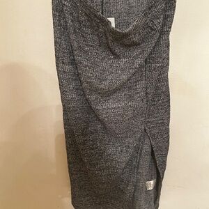Charcoal grey and black knit skirt set. Cropped shirt with midi length skirt with side split. Brand new with tags.