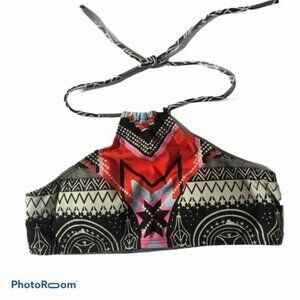 2 piece swimsuit bikini graphic black neck psychedelic pattern medium READ