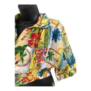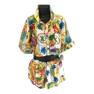 2piece colorful sheer tropical paradise cropped button down shirt and shorts set size small new
