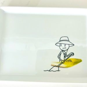 This wonderful plates were designed by artist Jana Kinsman using mixed media. Plates display layers of black sketched drawing with color photo.