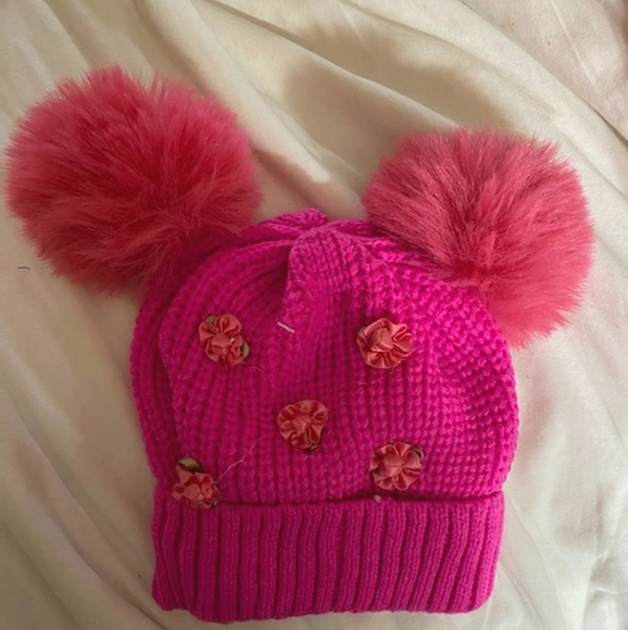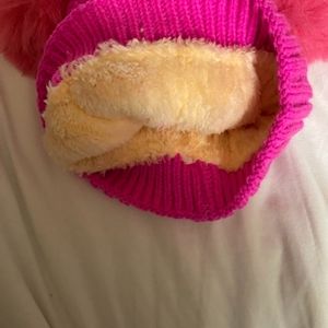 Brand new Beanie fits adult and children. Knitted and lined with soft wool like fabric comes in hot pink and light pink.