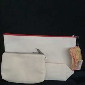 One 12 1/2” x 8” NWT All Natural pouch from Daiso Japan. One 8” x 5 1/2” NWOT slightly padded pouch by thirty-one